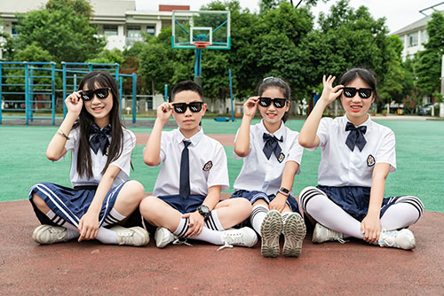 统一服装的班级集体照拍摄